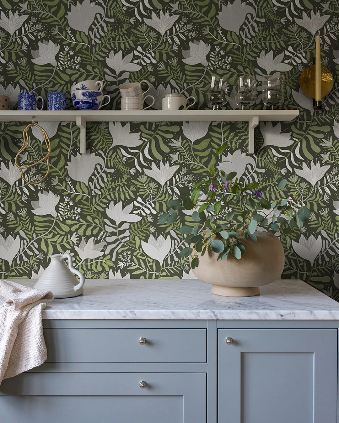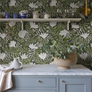 (25921) Grön, Blommor & Blad;Retro