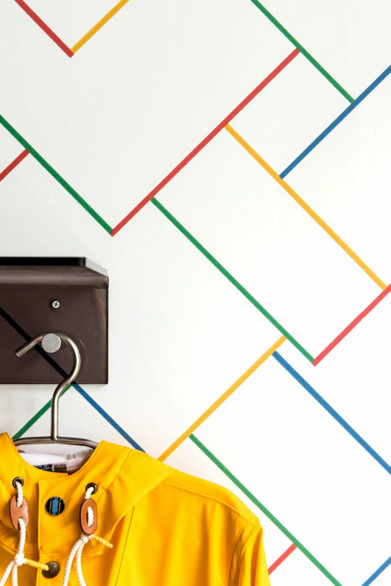 Tapeten Buffo är från 10-gruppens Durokollektion 1981. Den är typisk för 80-talet med sin vita botten och klara starka färger. Buffo ritades av Britt-Marie Christoffersson, en av grundarna till 10-gruppen.