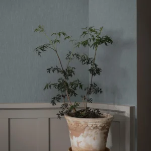 Tapeten Dusty Denim har en diskret struktur som både känns och ser ut som vävt linnetyg. Strukturen ger denna enfärgade tapet ett levande uttryck – och när ljuset faller rätt ett nästan drömskt skimmer. Kulören är en lugn, dämpad blå med en aning grönt i; en mild, behaglig nyans för ombonade rum med karaktär.I kollektionen Linen finns totalt 35 tapeter med samma mjuka linnestruktur. Titta gärna även på Deep Lake som är något mörkare blågrå.