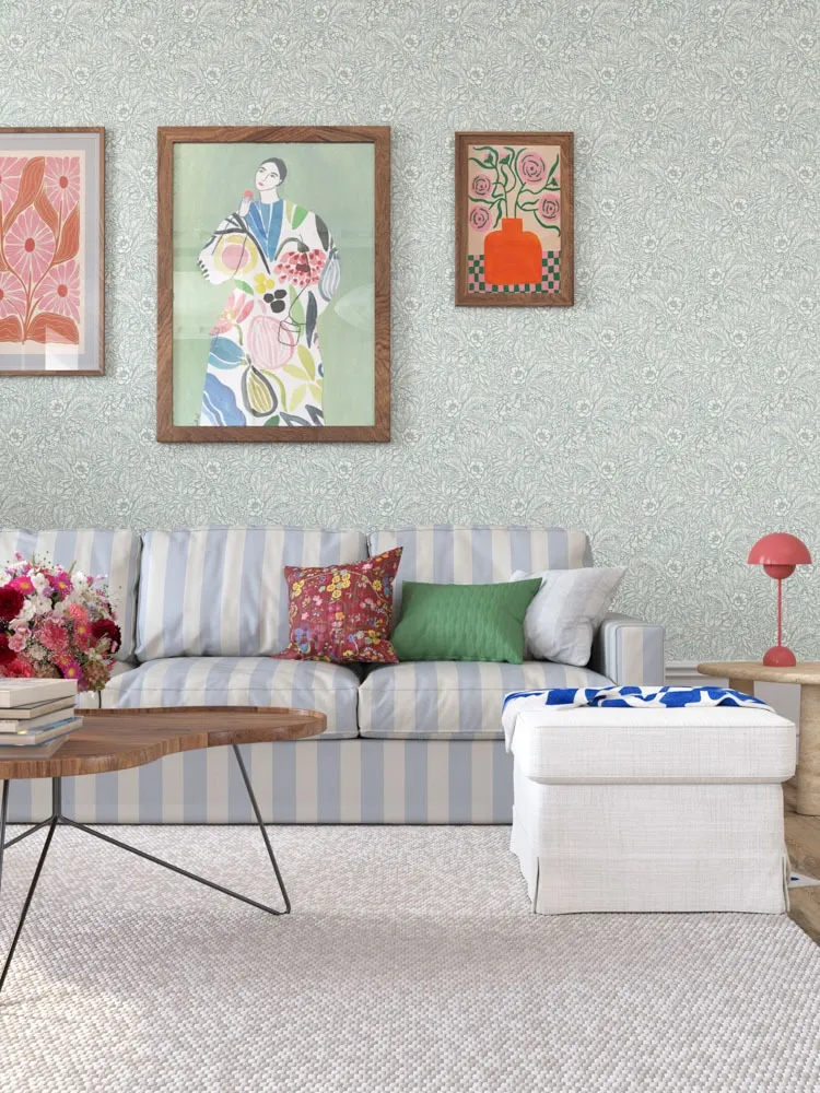 Emma är ett tidlöst mönster där blommor och blad slingrar sig över ytan och skapar en mjuk, blomstrande känsla på väggen. Inspirationen hämtas från klassiska motiv, med en glimt av vår egen svenska flora, där den lilla Linnéablomman diskret smyger sig in bland växtligheten. Emma finns i sex färgställningar vilket gör det enkelt att hitta sin favorit. Design: Maria Bryngemark