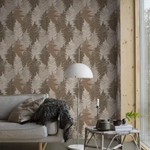 Den frodiga tapeten Fern Forest täcks av vackra ormbunksblad i ett tätt, sirligt mönster. På håll bildar bladverket en skog av ormbunkar i en fiskbensliknande mönsterbild. En vilsam tapet som skapar naturlig harmoni i rummet. Fin i till exempel sovrum eller vardagsrum.Här ser du Fern Forest i en jordig färgskala; olika nyanser av vitt, beige och brunt på gråbeige botten. Tapeten finns också i grönt, grått och beige på blekblå botten!
