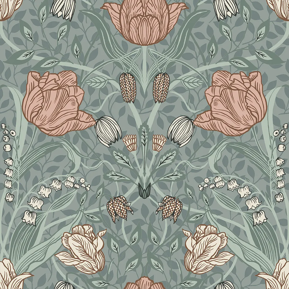 (33010) Grön, Rosa, Blommor & Blad;Stormönstrat Fler färger
