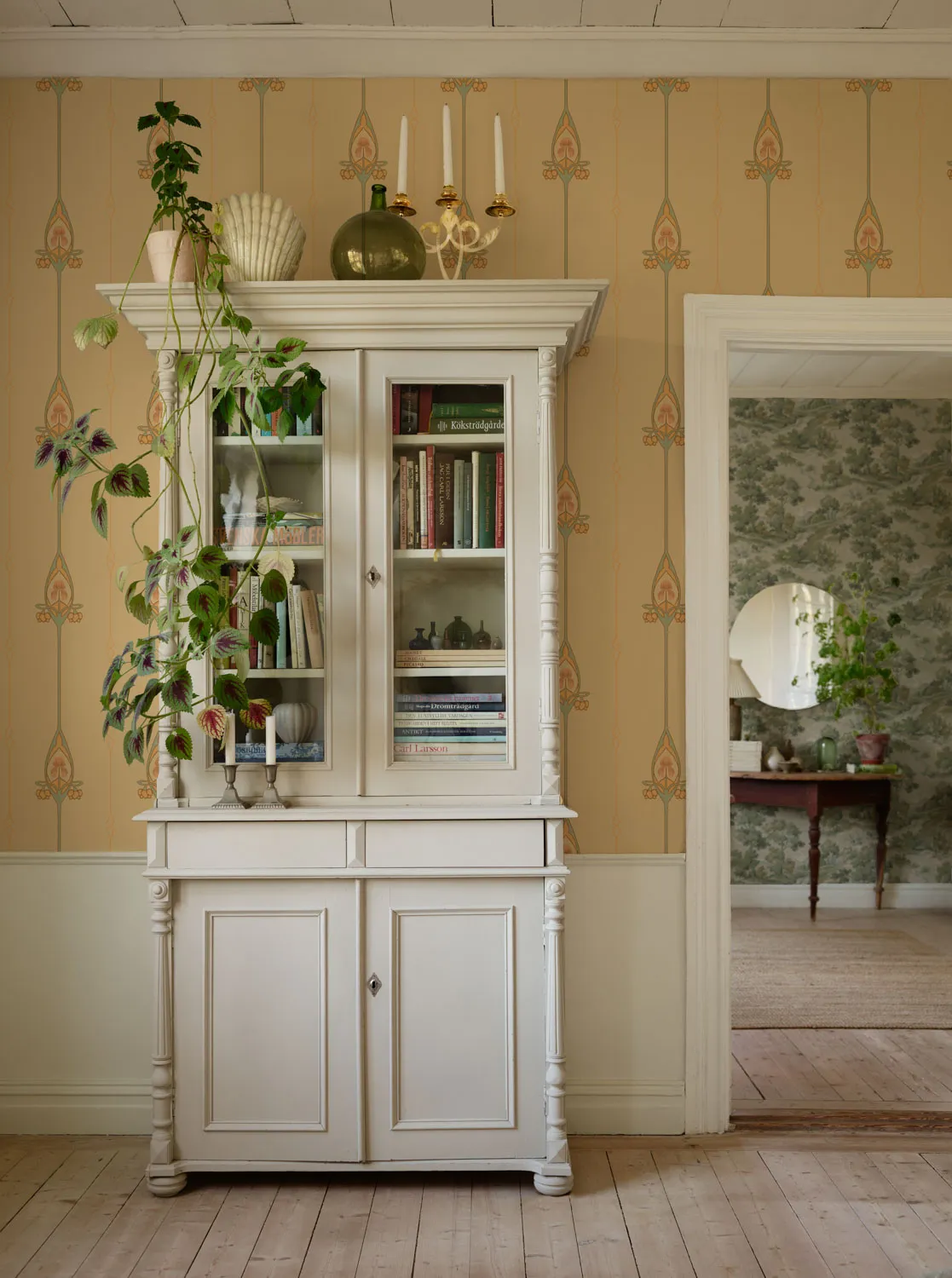 Gamla Grand har ett stramt men samtidigt mjukt jugendmönster i randning. Förlagan till denna tapet kommer från Gamla Grand i Gävle, och dateras till tiden kring 1890–1920.