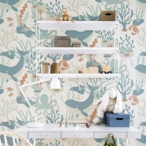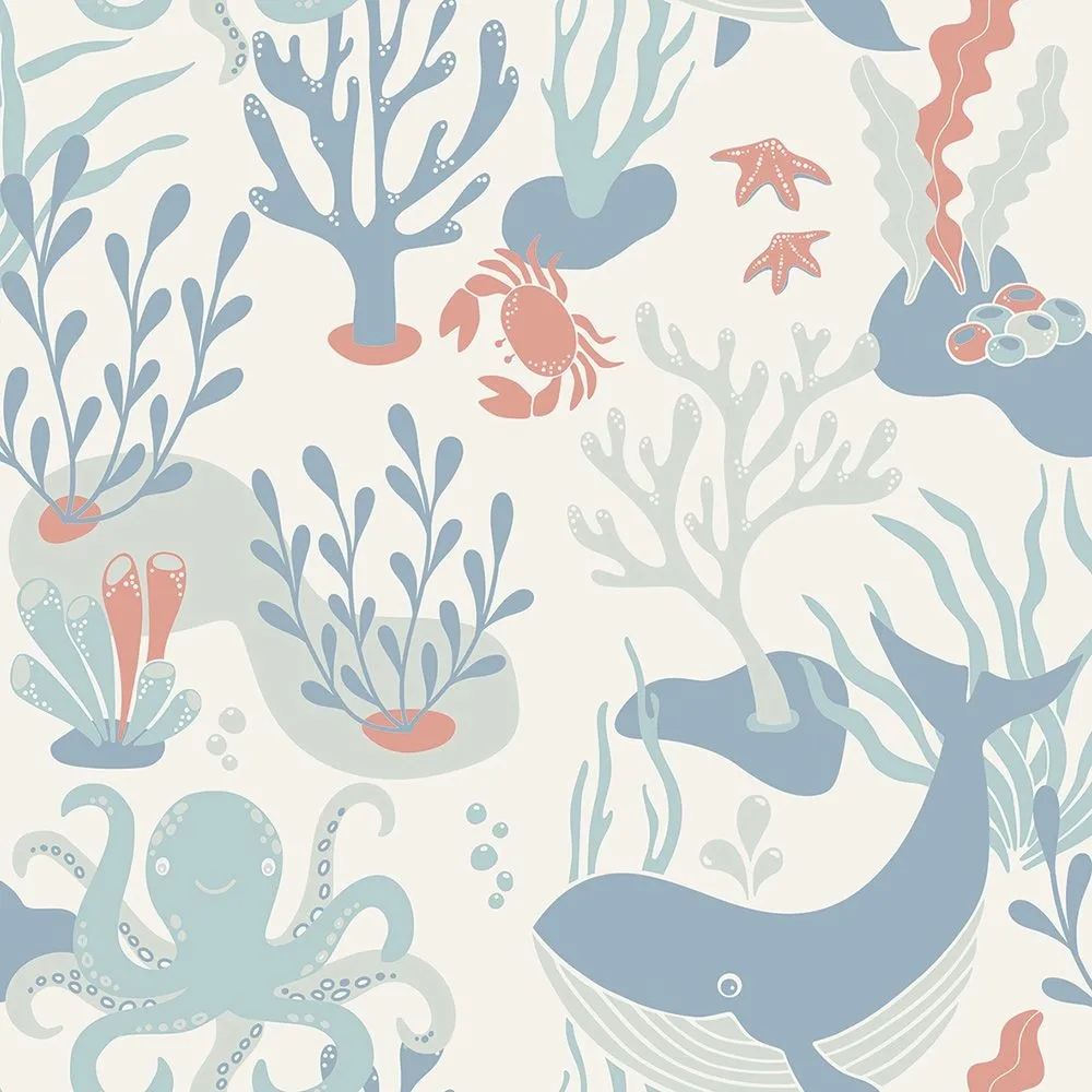 Ett lekfullt mönster som tar oss ner under ytan där vad som helst kan hända! En val pratar med en glad bläckfisk och sjöstjärnorna ser på.