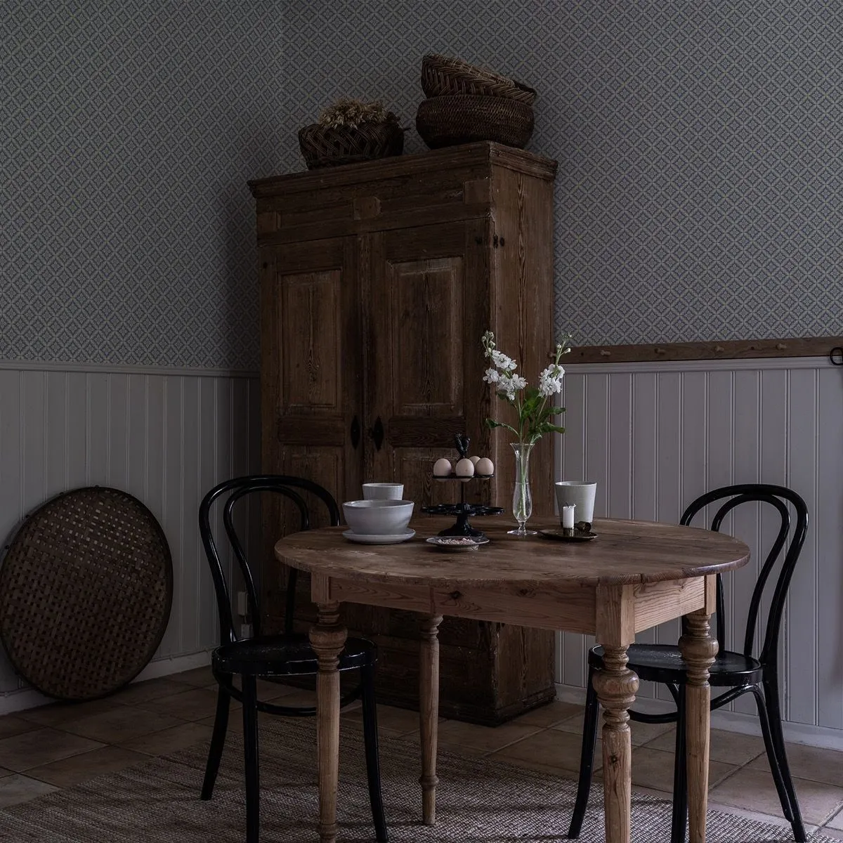 Ingrid för tankarna till ett sommartorp med mjukt böljande gardiner och smultron på strå. Den lilla stjärnan är en klassiker som klätt väggar i alla hem genom alla tider. Mönsterförlagan skickades till oss under tapetuppropet 2022.