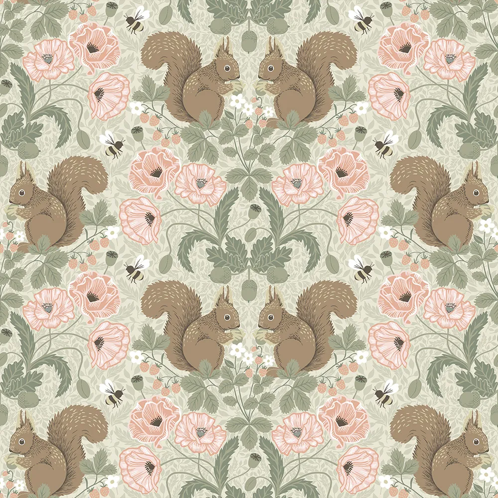 (44124) Grön, Rosa, Blommor & Blad;Barn;Djur & Fåglar