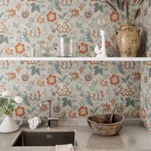 (28001) Beige, Grön, ;Blommor & Blad;Stormönstrat Fler färger