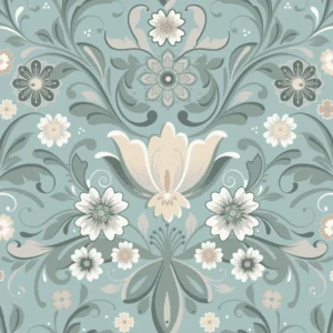 (24113) Grå, Grön, Blommor & Blad;Medaljong & Trellis
