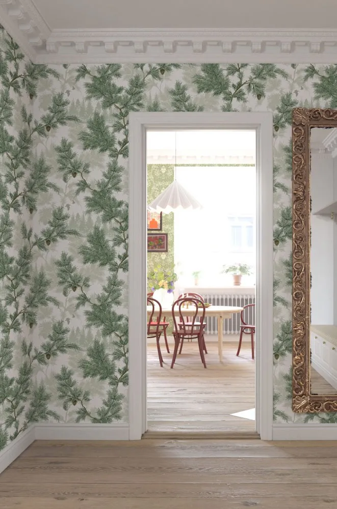 Sommarskogens dofter av tallbarr och grönska blandas med det stilla surret av insekter. Solens strålar silar mjukt genom grenverket och dansar över marken. Med Sommargläntan har vi fångat den doftande sommarskogen och tagit den med in i hemmet. Design: Maria Bryngemark